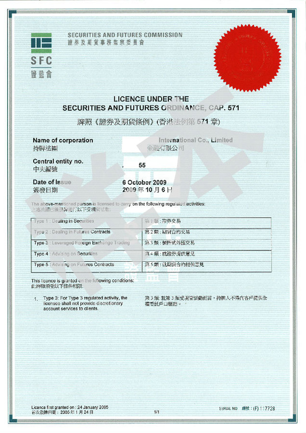 香港金融牌照分為1-9類,獲得牌照即為“香港證監會持牌人”。