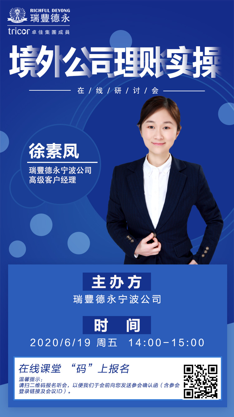 為了企業(yè)增強海外投資規(guī)劃管理能力和風險管控意識,助力外向型企業(yè)“走出去”行穩(wěn)致遠,瑞豐德永6月19日將舉辦《境外公司理賬實操》在線公開課。